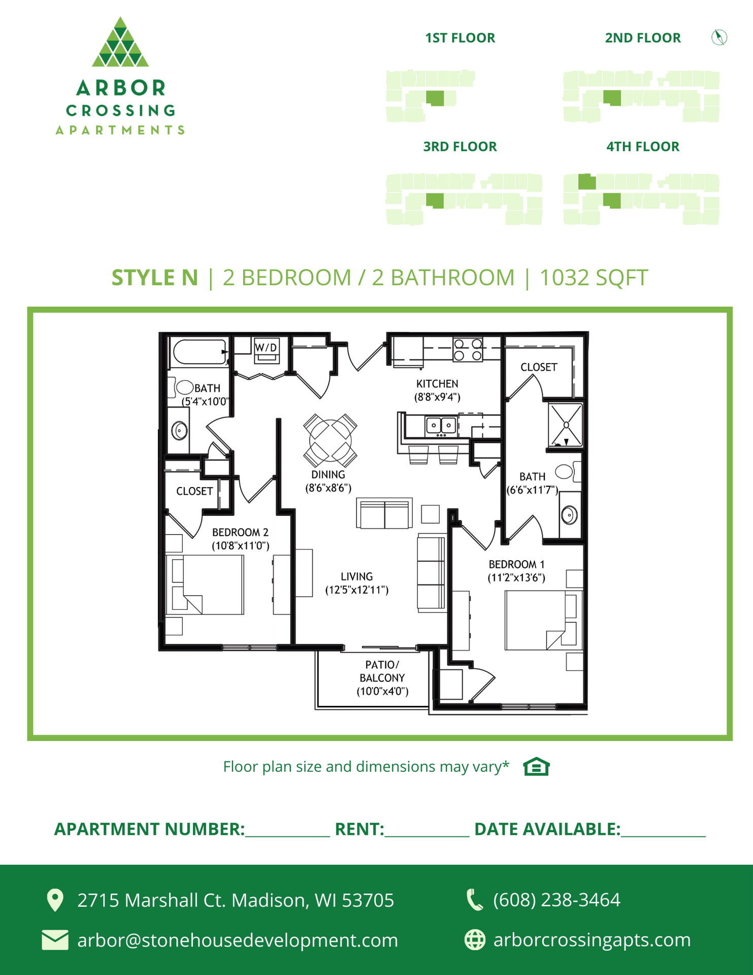 N Floor Plan - 2 Bedroom - Westside
